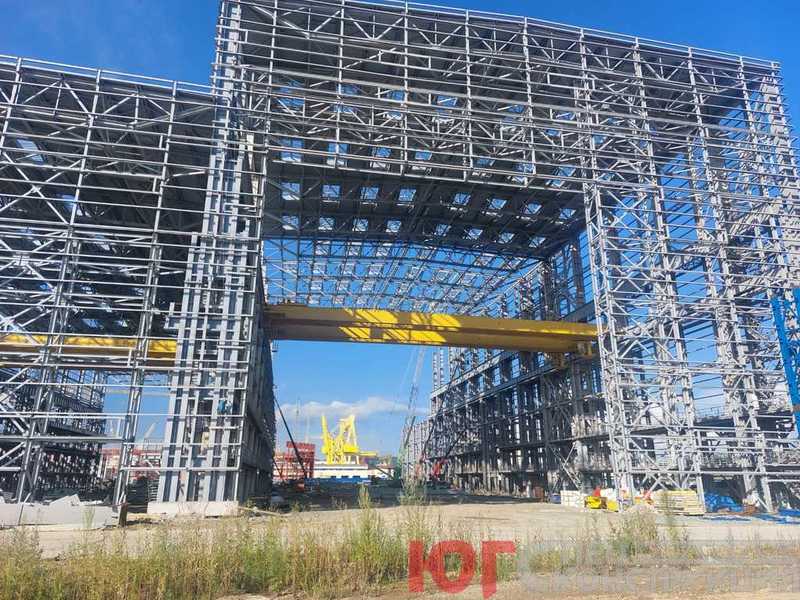 Монтаж цеха криво линейных блоков на заводе «Звезда» в г Большой Камень Подъем фермы на цехе сборки криво линейных блоков Оставьте заявку