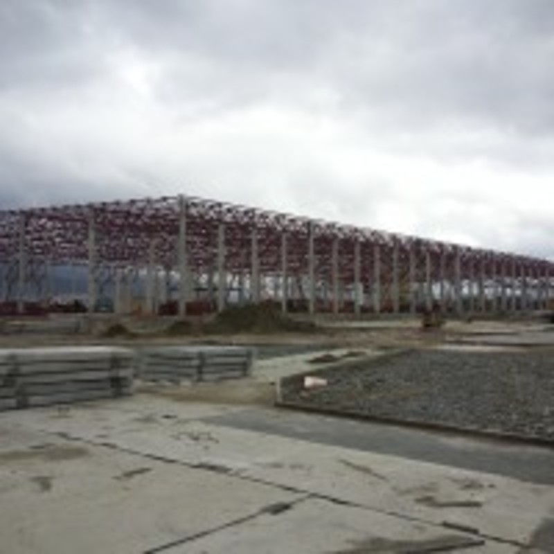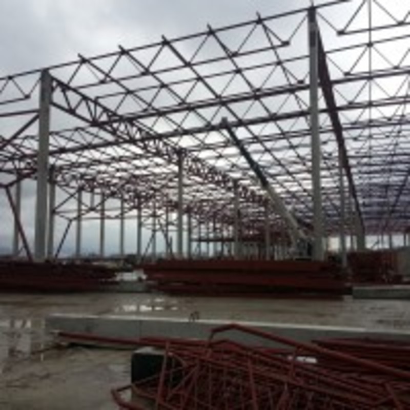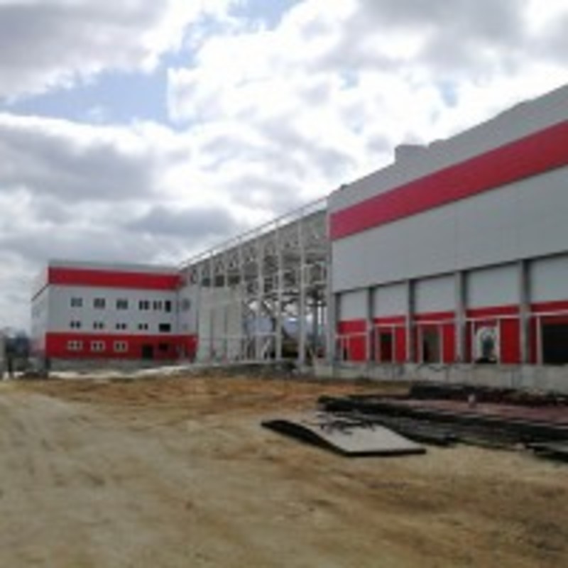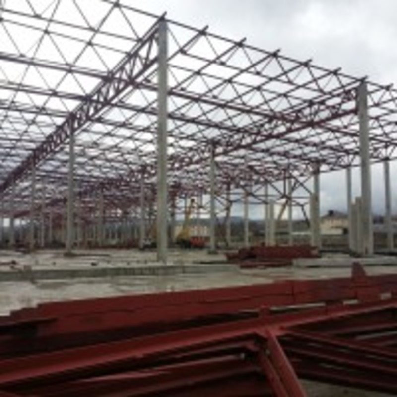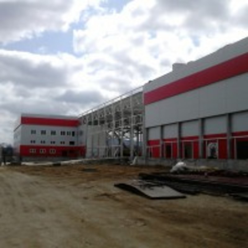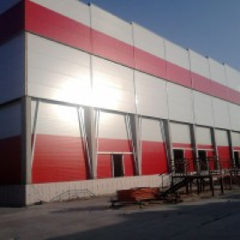 На складе продовольственных и непродовольственных товаров в г. Новороссийске приступили к монтажу ограждающих конструкций стен из профилированного листа.